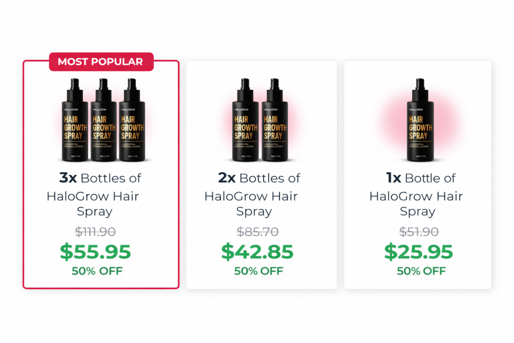 HaloGrow is a natural solution designed to help fight hair thinning and improve the overall health of your hair and scalp. With a unique blend of carefully selected ingredients, it targets the root of the problem, helping reduce hair loss while restoring a fuller, healthier appearance.