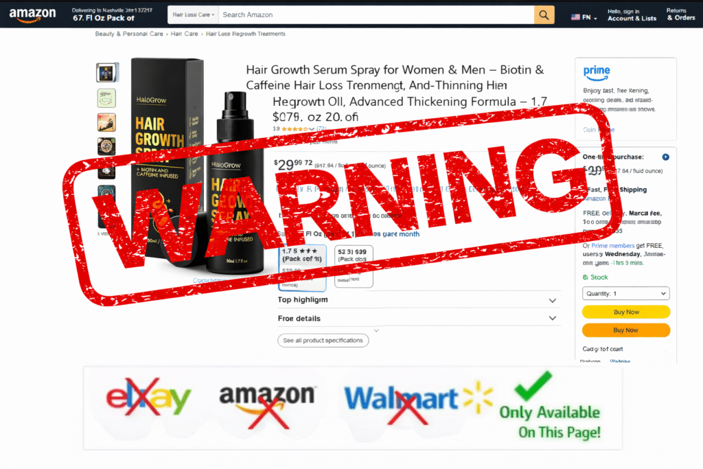 It is important to exercise caution when purchasing HaloGrow, as counterfeit products have been reported. Many individuals have been misled into buying from unauthorized sellers or online marketplaces, only to receive fake bottles with ineffective or unknown ingredients.